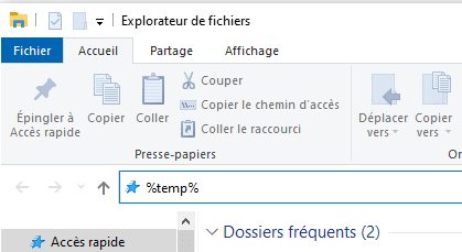 En fait, c’est très simple, il suffit, dans une fenêtre de l’explorateur de Windows, d’indiquer %temp% dans la barre d’adresse, puis de valider à l’aide de la touche Enter.