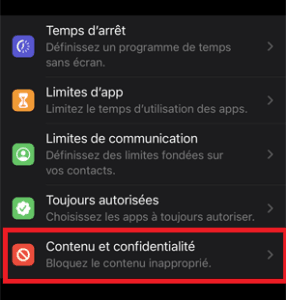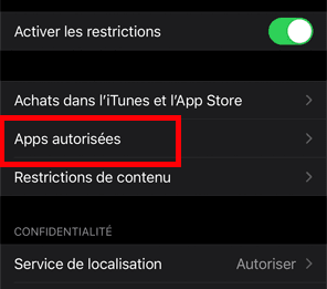 Pour ce faire, il faut vous rendre les Réglages de votre smartphone, puis dans la rubrique Temps d’écran, Contenu et confidentialité, Apps autorisées.