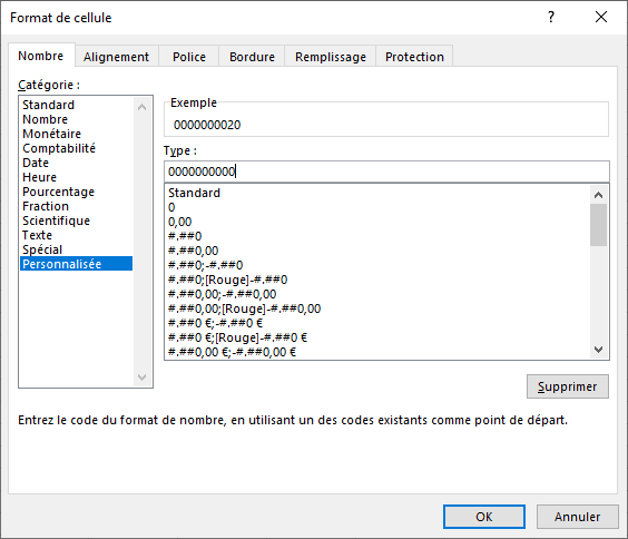 Par défaut, Excel va supprimer automatiquement tous les 0 se trouvant devant un nombre. Ce qui veut dire que 00020 va devenir 20, ce qui n’est pas toujours souhaité.