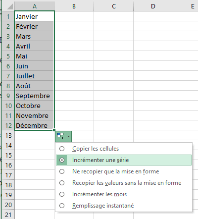 Pour copier un élément (un nom par exemple) dans toutes les cellules, choisissez « Copier les cellules ».