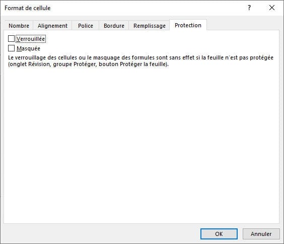 Dans l’onglet Protection, décochez la case Verrouillée.