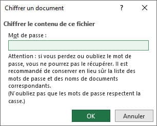 Un boite de dialogue s’ouvre et vous demande le mot de passe à utiliser avec ce document.