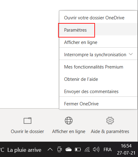 Pour modifier ce réglage par défaut, faites un clic droit sur l’icône Onedrive présente dans la barre des tâches (près de l’heure).