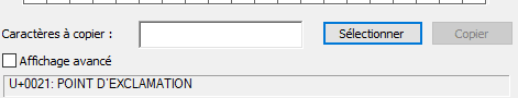 La table des caractère permet également d’afficher les codes correspondants à chaque caractères, il s’affichera en bas à droite de la fenêtre.