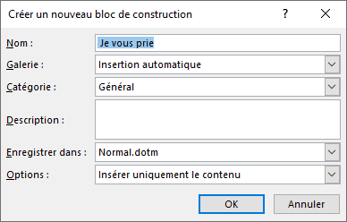 Pour enregistrer une phrase type, tapez votre phrase dans un document vide, ensuite sélectionnez là et appuyez sur la touche ALT + F3